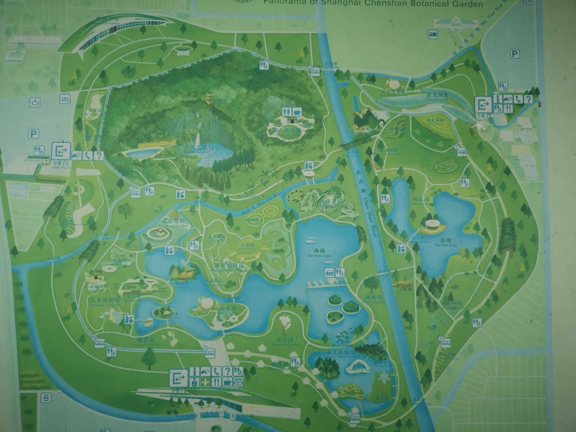 In Sheshan gibt es viel Grün und weitläufige Parkanlagen. Ein Highlight ist der Botanische Garten Chenshan, der im April 2010 zur Expo 2010 eröffnetet wurde. Entworfen wurde der Garten von dem Münchner Planungsbüro Valentien + Valentien. Dort können nicht nur fast 10.000 Pflanzenarten aus der ganzen Welt bestaunt werden. Viele Schulklassen ziehen durch die Anlagen, picknicken oder vergnügen sich. Ebenso wie Familien oder Reisegruppen.