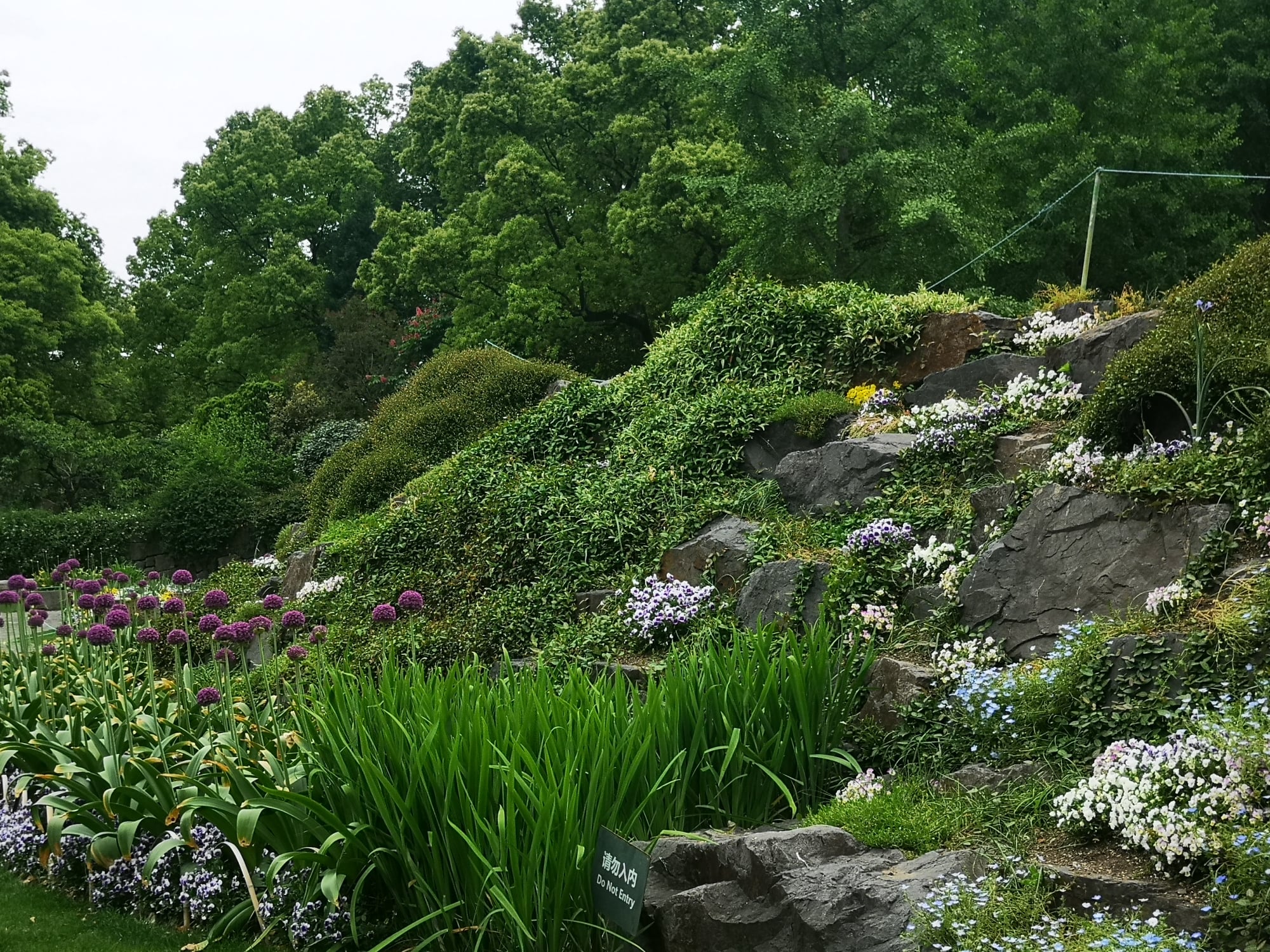 Der Garten wird von einem bis zu 14 Meter hohen begehbaren aufgeschütteten Erdring unterteilt, auf dem unterschiedliche Lorbeerwälder angepflanzt wurden. Diese Wälder repräsentieren jeweils einen Kontinent. Des Weiteren gibt es Gewächshäuser, Forschungsgebäude und ein großes Haupteingangsgebäude. Der Botanische Garten wird von einem kleinen Bach in West-Ost-Richtung und einem Kanal in Nord-Süd-Richtung durchflossen.