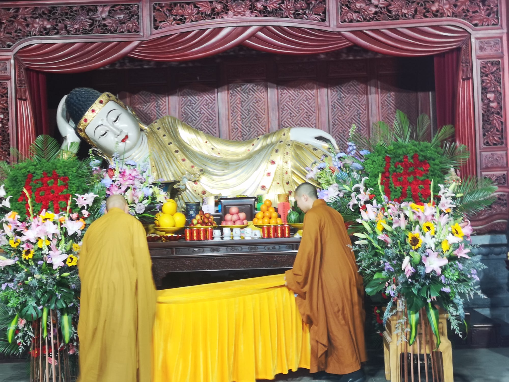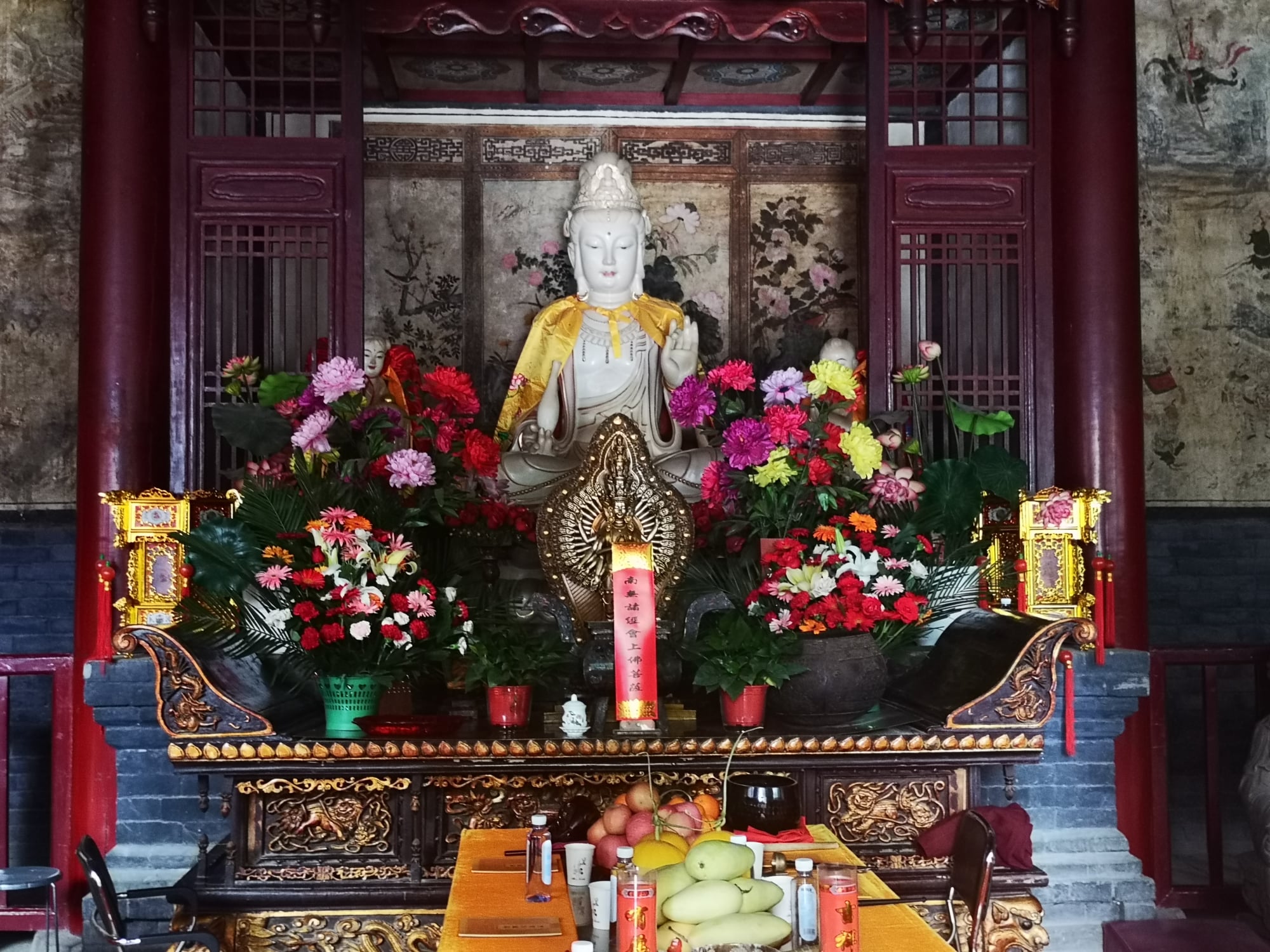 Der Tempel wurde im Verlauf seiner Existenz etliche Male zerstört, geplündert und wieder aufgebaut. Am bekanntesten ist die angebliche Zerstörung des Tempels in der Qing-Dynastie durch Kaiser Kangxi (1654–1722). Er soll aus Angst vor der Kampfkraft der Mönche die Zerstörung des Tempels und die Ermordung vieler Mönche veranlasst haben. Tatsächlich war Kangxi wohl eher ein Unterstützer des Tempels, dessen über dem Haupttor des Tempels angebrachte kalligraphische Inschrift noch heute dort hängt. Die letzte Zerstörung des Klosters erfolgte im Jahre 1928, als verschiedene Kriegsfürsten ihre Streitigkeiten auf dem Gebiet des Tempels ausfochten. Dabei ging ein großer Teil der religiösen Kunstschätze und Schriften des Tempels verloren; nur kleine Teile des Tempels wurden wieder aufgebaut.