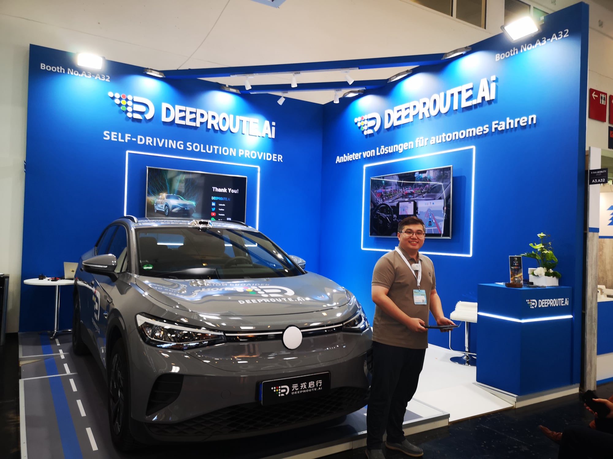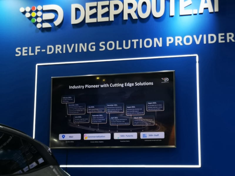 Manche der spannendsten Unternehmen aus China, welche die Zukunft des Automobil prägen könnten, sind auf der IAA Mobility auf winzigen Ständen etwas versteckt. So auch DeepRoute.ai. Das 2019 von Dr. Maxwell Zhou gegründete Unternehmen hat seinen Hauptsitz in Shenzhen und verfügt über Niederlassungen in der ganzen Welt. Das StartUp hat sechs Finanzierungsrunden abgeschlossen und dabei über 500 Millionen US-Dollar eingesammelt. Ziel des Unternehmens ist es, mit innovativer Technologie künstliche allgemeine Intelligenz in Robotern zu schaffen. Serienfahrzeuge und der groß angelegte Einsatz von Robotaxis werden eine riesige Menge an Daten aus der physischen Welt sammeln, die es DeepRoute.ai ermöglichen werden, ein KI-Gehirn mit menschlicher Weisheit zu entwickeln, so die Unternehmensvision.