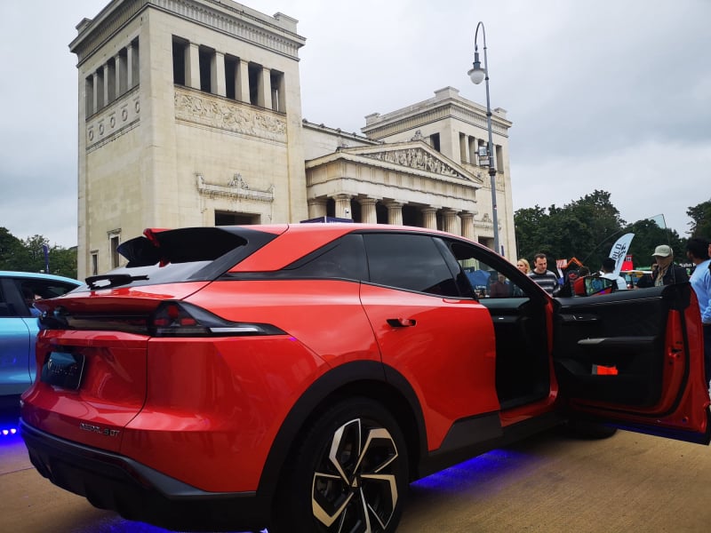 Mehr Luxus und Unvernunft wagt dagegen die Marke Avatr, ein Gemeinschaftsunternehmen von Changan und dem Batterieweltmarktführer CATL sowie Huawei als strategischem Partner. Auf dem Königsplatz stehen die futuristisch-stromlinienförmig gezeichneten Coupés und SUVs, für die auch ein Designzentrum in München verantwortlich zeichnet. Besonderer Hingucker: ein Display unter der Windschutzscheibe außen, auf dem Smileys oder kurze Botschaften wie in der Fahrtrichtungsanzeige eines Linienbusses angezeigt werden können.