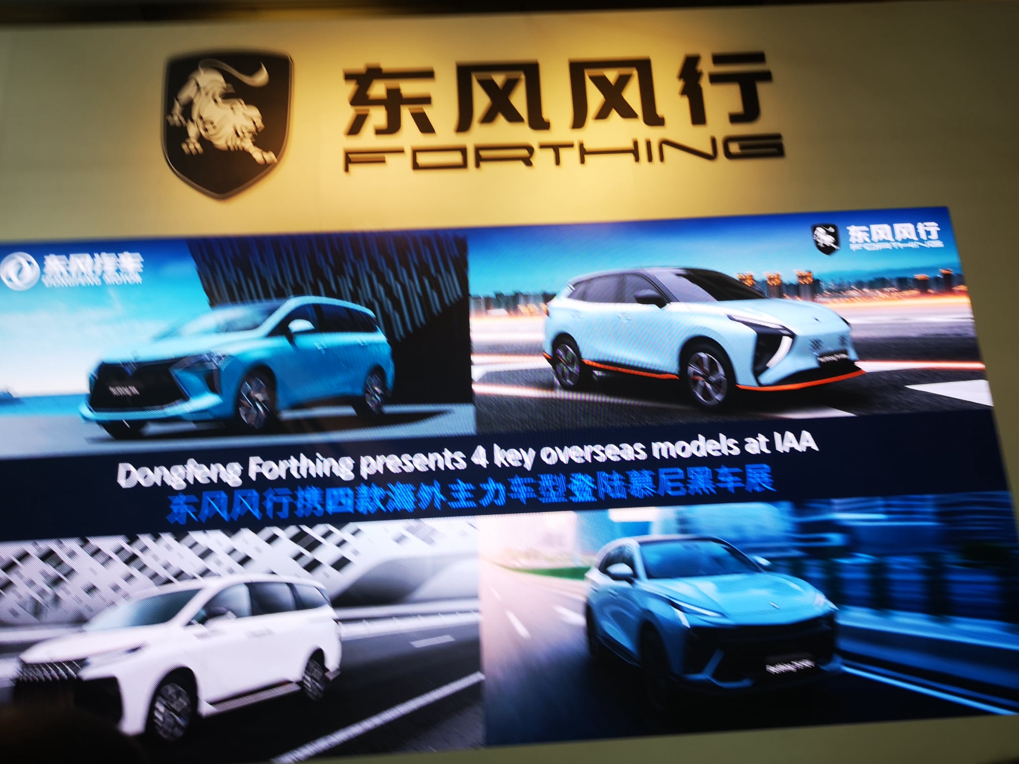 Bereits auf der IAA Mobility 2023 gab Dongfeng Liuzhou Motor sein Debüt. In Zusammenarbeit mit der digitalen Außenhandelsplattform von Alibaba übertrug das Unternehmen eine 8.000 Kilometer lange Fahrt vom Werk in Dongfeng Liuzhou per Livestream und präsentierte vier mit alternativen Antrieben angetriebene Fahrzeuge, darunter den vollelektrischen SUV Forthing Fridayund den Hybrid-MPV M6.,