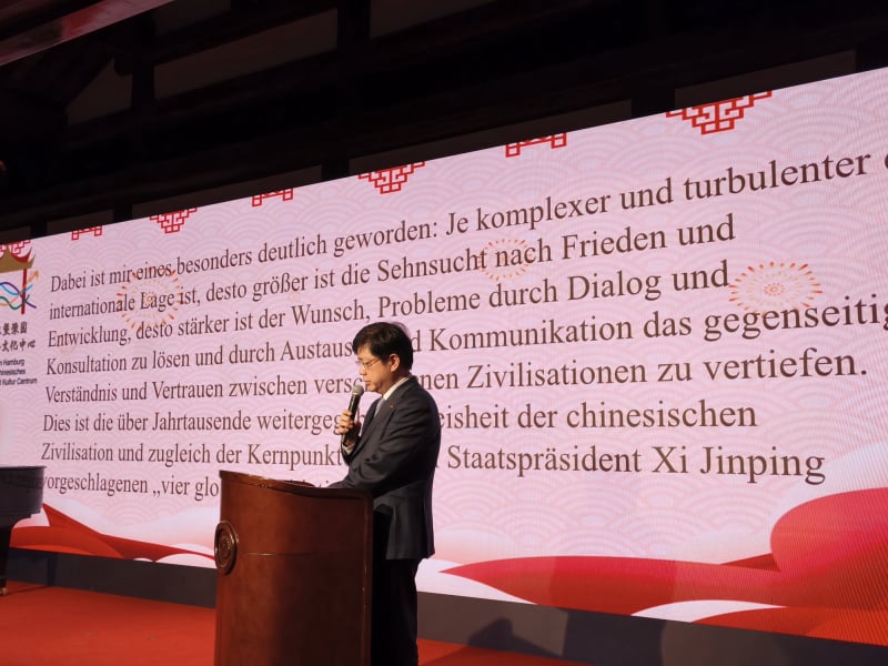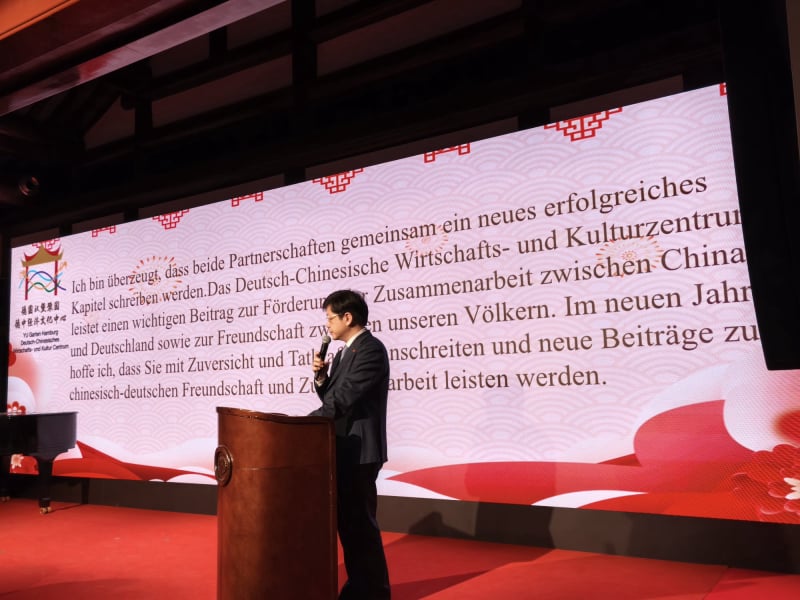 „Pragmatismus ist ein hervorragendes Merkmal der deutsch-chinesischen Beziehungen. Beide Länder unterstützen Multilateralismus und freien Handel. Sie sind gegen Machtmissbrauch, Mobbing und sollten zusammen wichtige Beiträge für den Erhalt des Friedens und eine gute wirtschaftliche Entwicklung leisten.“ Der Generalkonsul hob hervor, dass insbesondere die Kooperationen bei grünen Zukunftstechnologien wichtig und vielversprechend sind. Er hatte dazu in Norddeutschland bereits viele Gespräche geführt und sieht dafür gute Zusammenarbeitsmöglichkeiten zum gegenseitigen Nutzen. „Hamburg und Shanghai, Schleswig-Holstein und Zhejiang feiern dieses Jahr ihre 40-jährige Partnerschaft. Beide Partnerschaften werden neue, erfolgreiche Kapitel ihrer Kooperationen schreiben. Das Deutsch-Chinesische Kulturzentrum leistet dabei einen wichtigen Beitrag für die Freundschaft zwischen China und Deutschland, für die Freundschaft zwischen beiden Völkern", erklärte der Generalkonsul.
