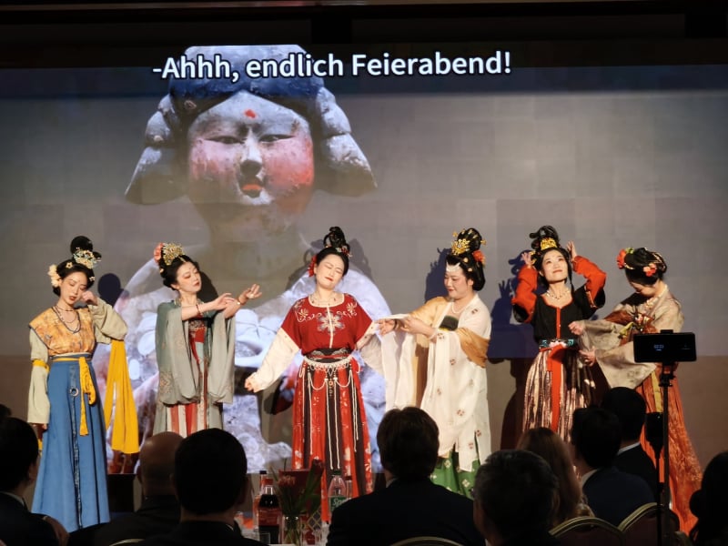 Durch den Abend führte Internetberühmtheit Lilliang Zhang mit ihrer charmanten, geistreichen Moderation, zusammen im kurzweiligen Dialog mit Johann Stooß vom Management des Yu Gartens. „Das Jahr des Feuerpferds steht für eine enorme Dynamik, für Optimismus und Präsenz. Aber es hat auch das Risiko von Übertreibungen. Hierzu kann man Konfuzius zitieren, der sagte: Ein Mann, der die Wahrheit spricht, braucht ein schnelles Pferd. Hoffen wir, dass nicht nur der kanadische Premierminister ein schnelles Pferd hatte. Sondern viele in diesem Jahr mit einem schnellen Pferd unterwegs sein werden“, so Stooß.