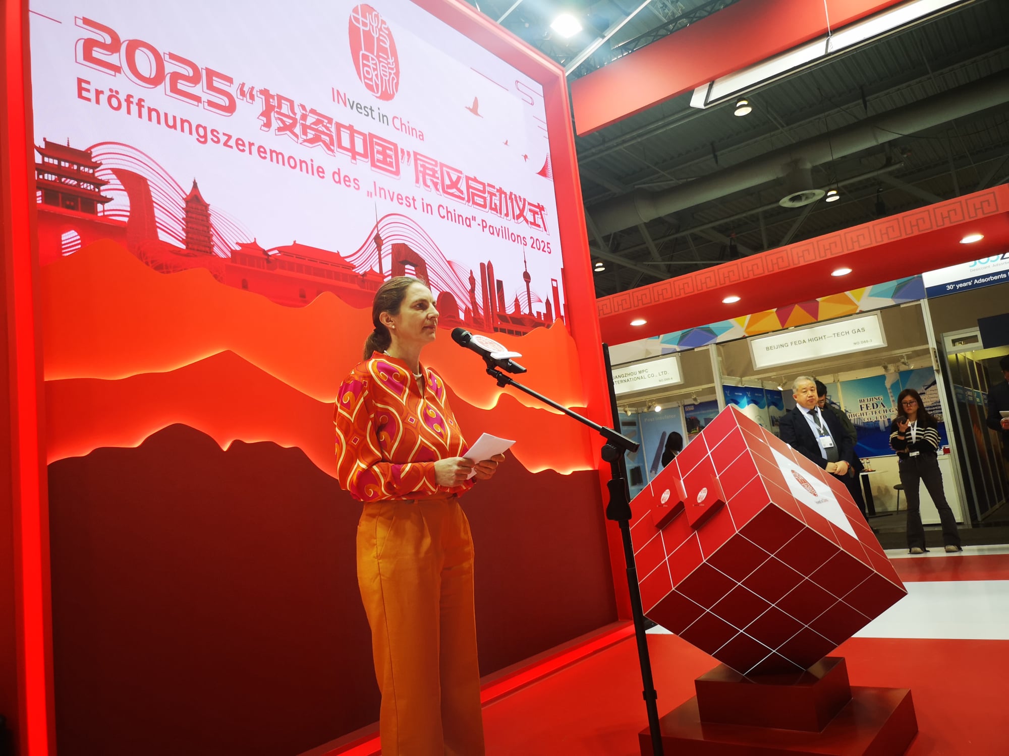 Es ist zu sehen, dass wir weiterhin unsere Reformen und die Öffnung unseres Landes vertiefen wollen und dass wir weiterhin ausländische Unternehmen ansiedeln wollen. Die Hannover Messe ist ein guter Zeitpunkt, dies zu zeigen, und wir haben eine gute Plattform dafür aufgebaut. Damit Sie hier miteinander ins Gespräch kommen, gemeinsam nach neuen Chancen suchen können und auch der globalen Ungewissheit zusammen entgegenwirken zu können. Wir müssen noch mehr zusammenwachsen, wir müssen uns gemeinsam entwickeln. Wir sind fest davon überzeugt, dass Deutschland, dass Europa zusammen mit China stark werden kann, so die Botschaftsrätin.